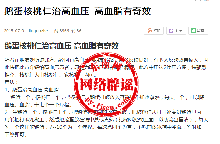 鹅蛋和核桃仁治疗高血压?是真的吗?