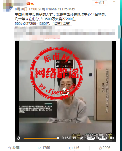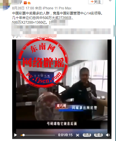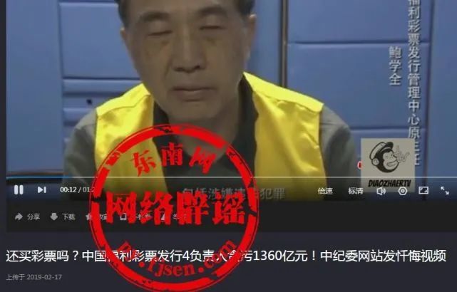 网络辟谣举报平台记者注意到,网传信息另外一段视频来源于2018年11月9日,政府官方网站发布"以案明纪:中国福利彩票发行管理中心4名原负责人忏悔视频"。视频中并没有提及1360亿元。