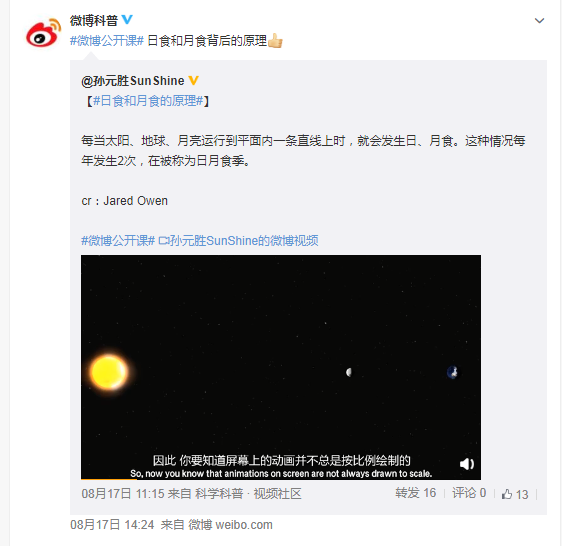 科学科普博主 "孙元胜SunShine "指出:每当太阳、地球、月亮运行到平面内一条直线上时,就会发生日、月食。这种情况每年发生2次,在被称为日月食季。