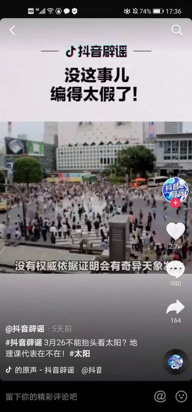 抖音辟谣指出:没有这事儿,编得太假了!2021年3月26日,只是普通的一天,没有权威依据证明会有奇异天象。