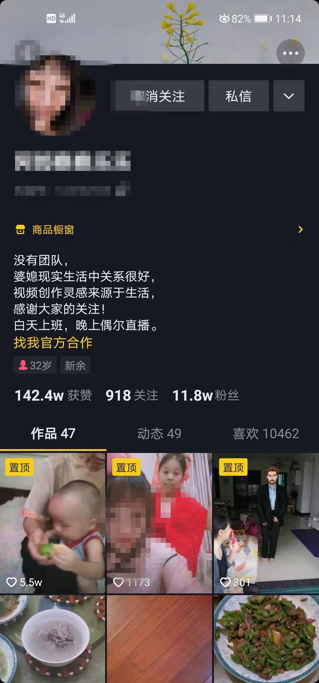 原视频发布者主页截图