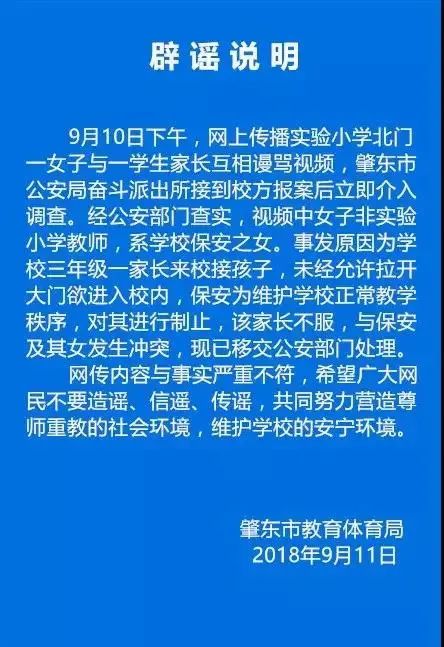 真相:2018年9月11日,肇东市教育体育局辟谣:网传视频中女子非实验小学教师,系学校保安之女。网传内容与事实严重不符。
