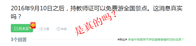 谣言一、2016年9月10日起,持教师资格证可免费游全国景区