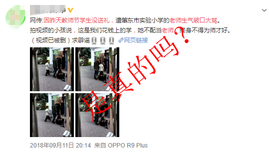 谣言三、因教师节学生没送礼,遭肇东市实验小学的老师破口大骂