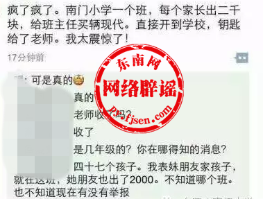 谣言二、合肥一小学某班家长教师节前一人2000凑钱为老师买车