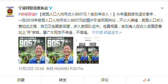 今年是脱贫攻坚收官年,一张2019年贫困人口人均月收入9057元的图片引发网民热议,不少人唏嘘,贫困人口收入竟如此之高,自己又拖国家后腿,步入贫困队伍中。但真相是,实则有人在收入后面恶意加上“月”字样。望广大网友不传谣,不信谣。