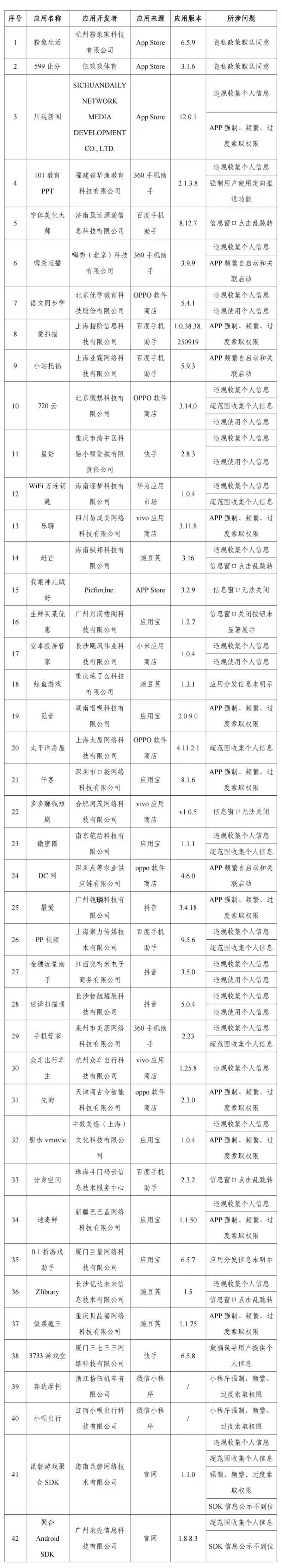 通 报工信部通报!这42款APP及SDK存在侵害用户权益行为