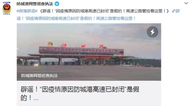 防城港公安交警在此辟谣,此消息不实!该图系滚动标语未完全显示引发误会。