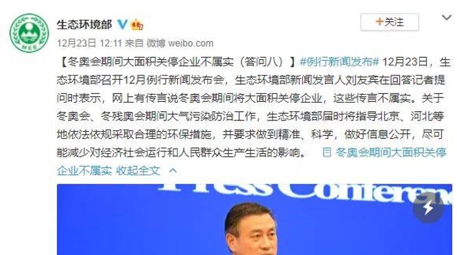 网上有传言说冬奥会期间将大面积关停企业,这些传言不属实。