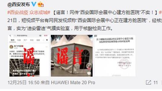 经核实,该信息为谣言,实为“迪安雷迪”气膜实验室,用于核酸检测工作。