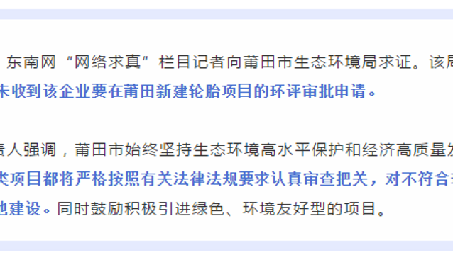 该局相关负责人表示,目前未收到该企业要在莆田新建轮胎项目的环评审批申请。