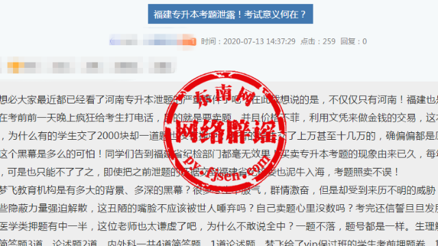 今日,福州市台江区梦飞教育培训中心发布声明称,经过校企宣传部门及全体教职员工自查,在考前该校除在微信朋友圈发布常规考试祝福外,并未联系过学员,“卖试题”说法子虚乌有。