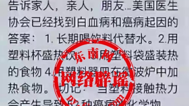 近日,一则温馨提示的消息在微信群内热传,消息称:“告诉家人,亲人,朋友…美国医生协会已经找到白血病和癌病起因的答案:1.长期喝饮料代替水。2.用塑料杯盛热饮;3.用塑料袋盛装热的食物4.用塑料器皿在微波炉中加热食物。切记:当塑料接触热力会产生导致52种癌病的化学物质。因此,这段讯息比100段其他讯息更为有用。通知到你身边的至亲好友,让他们免受其害。” 网传消息截图 这是真的吗? 我们一起来分析分析,找出真相。 1、该消息并非来自官方部门或者权威媒体报道,只是民间的小道消息,真实性存疑; 2、“这段讯息比100段其他任何讯息更为有用”,这蛊惑性的语言,透着谣言的味道; 3、通过查找资料,未发现美国有“医生协会”这个组织,只有“美国医学协会”和“美国医师协会”两个相似的词条,也未发现任何有关塑料致癌的新闻或相关科学论文。 可见,网传消息纯属谣言! 网传消息截图 另外,网络上还传播署名为“河南省胸科医院营养科”的该网传消息的图片,河南省胸科医院官方辟谣:说明一下,这个并不是我们官方制作的,是食堂私自制作,被发现后及时废弃的。 河南省胸科医院官方微博回应截图 官方部门以及权威媒体都曾辟谣 2016年9月28日,公安部刑侦局发布文章《辟谣 | 九月朋友圈十大谣言 看看你“中招”了吗?》指出:目前并没有证据能直接证明塑料加热与致癌之间存在着必然的、令人信服的联系。 公安部刑侦局微博截图 2019年4月24日,中国互联网联合辟谣平台强调:这是一则流传已久的谣言,已被多地网警辟谣。 中国互联网联合辟谣平台微博截图 安庆网警提醒:消费者在使用和购买用于盛食物的塑料袋时,要认准有QS认证等的产品,这类塑料袋经过高温、接触油脂性物质试验,用起来才安全。 安庆网警微博截图 网络辟谣举报平台提醒: 网络不是法外之地,不信谣,不传谣。面对海量的网络信息,广大网民要保持理性,对于未经核实的消息,不要随意转发,更不能添油加醋! |