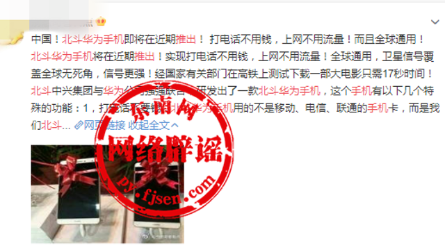 网上热传这样一则消息:华为推出的北斗手机将实现打电话不用钱、上网不用流量、号码全球通的功能,同时在珠穆朗玛峰山上都有信号。
