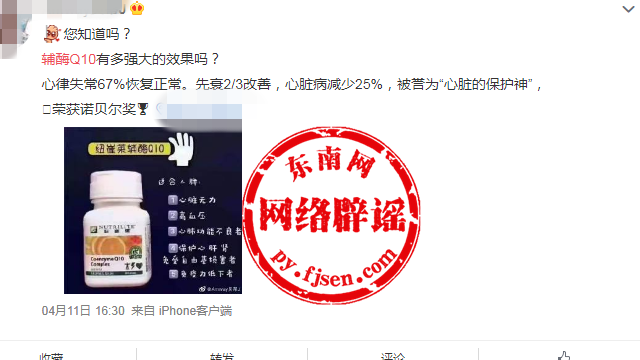 商家宣传截图 辅酶Q10近年来成为热销的保健品,越来越受到大家的青睐。辅酶Q10被商家宣传成为万金油,具有延缓衰老、保护心脏,预防和治疗心脏疾病,提高免疫力,抗癌防癌、助孕等多种功效。 这是真的吗? 网传消息截图 科学辟谣科普:辅酶Q10又称为泛醌,是一种存在于自然界的脂溶性醌类化合物,其结构与维生素K、维生素E与质体醌相似。期望通过补充辅酶Q10来治疗相关疾病是不可取的。 2020年11月23日,国家市场监督管理总局会同国家卫生健康委员会、国家中医药管理局制定了辅酶Q10等五种保健食品原料目录。辅酶Q10用量30-50mg成人每日,不适宜人群少年儿童、孕妇、乳母、过敏体质人群,服用治疗药物的人群食用本品时应向医生咨询,功效为增强免疫力,抗氧化。 国家市场监督管理总局文章截图 国家市场监督管理总局资料截图 安安科普《辅酶Q10真的无所不能?》建议:对于那些免疫力低下的中老年朋友、“三高”人群、心脑血管病患者、脑力劳动者、吸烟、酗酒、应酬多运动少等人群,需要充分评估自身需求与补充目标,在医生或药师的指导下服用辅酶Q10,不建议长期大量服用。 安安科普文章截图 中国经济网文章《警惕辅酶Q10宣传陷阱 “保护心脏”“用于备孕”不靠谱》表示:平时注意营养均衡就不会缺乏辅酶Q10,也不用额外补充,人体完全可以依靠食物摄取和自身合成满足身体所需。 综上所述,保健品辅酶Q10产品有其作用,可以增强免疫力,抗氧化,作为保健品吃吃是可以的,要想起治疗疾病预防疾病还是莫要奢望,毕竟保健品不是药品,不能起到治疗疾病的作用。 商家广告截图 当感觉胸闷气短、心悸、心率不齐,都是身体缺乏辅酶Q10信号? 当身体出现上述症状,一定要去正规医院检查,对症下药,绝不是靠自行服用辅酶Q10保健品解决问题,以免耽误病情。 网络辟谣举报平台提醒: 面对形形色色的网络信息,广大网民要保持理性,学会辨识信息的真伪,科学认识保健品作用,莫把保健品当药品。 |