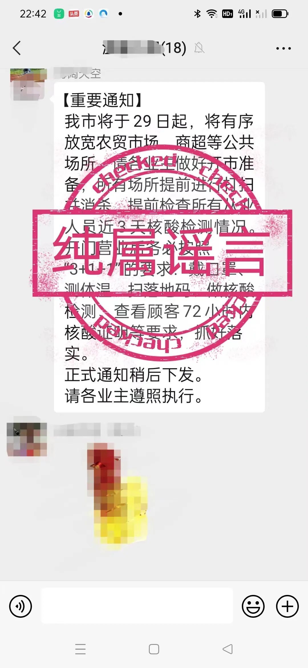近日,网传“我市将于29日起,将有序放宽农贸市场、商超等公共场所,请各业主做好开市准备,所有场所提前进行打扫并消杀,提前检查所有从业人员近3天核酸检测情况。开门营业后务必按照“3+1+1”的要求......请各业主遵照执行”,在此,严正声明,所传内容纯属谣言,希望广大市民注意甄别疫情信息,及时关注“万宁发布厅”“万宁广播电视台”“万宁市商务”等官方发布的消息,做到不造谣、不信谣、不传谣,共同维护良好的疫情防控秩序。对于编造虚假信息、散布谣言、扰乱公共秩序等违法行为,公安部门将依法查处,严厉打击。